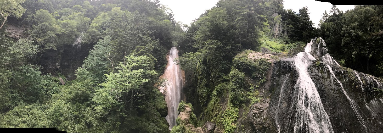 こちらはパノラマで撮ったもの。水量が少な目で一番左の滝は分かりづらいですが、真ん中をよく見てください。何か気づきませんか?