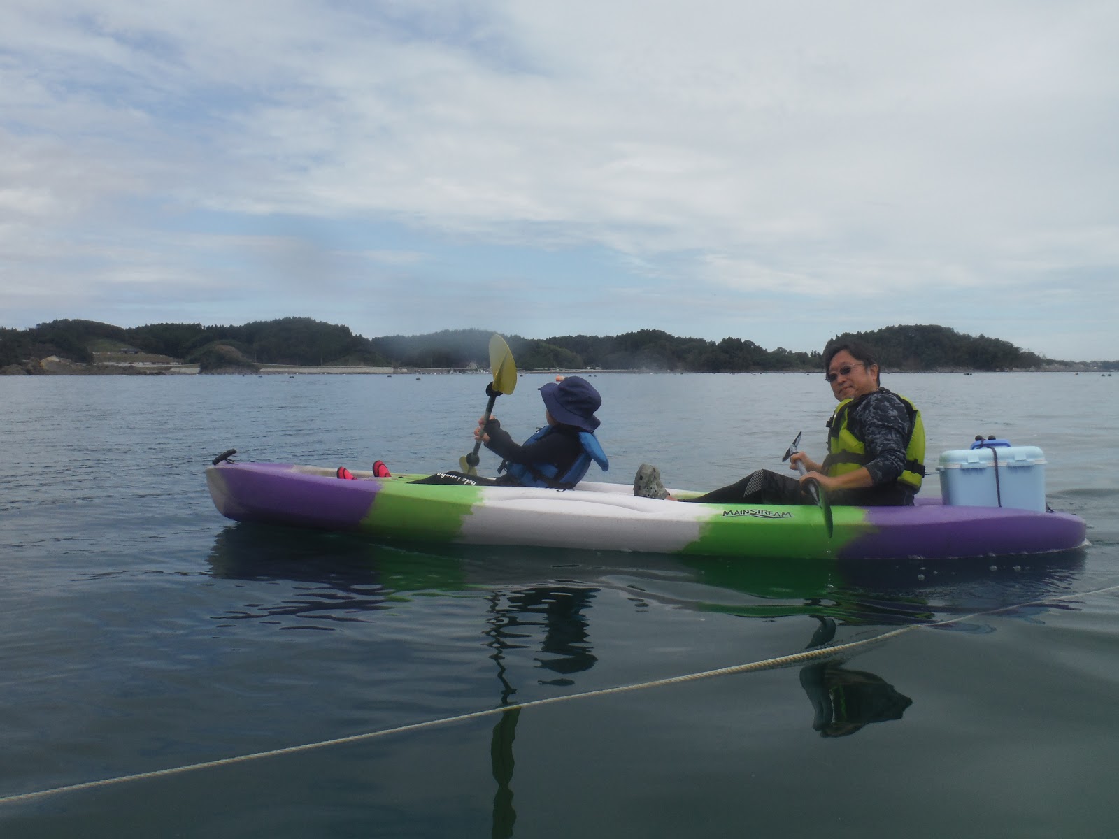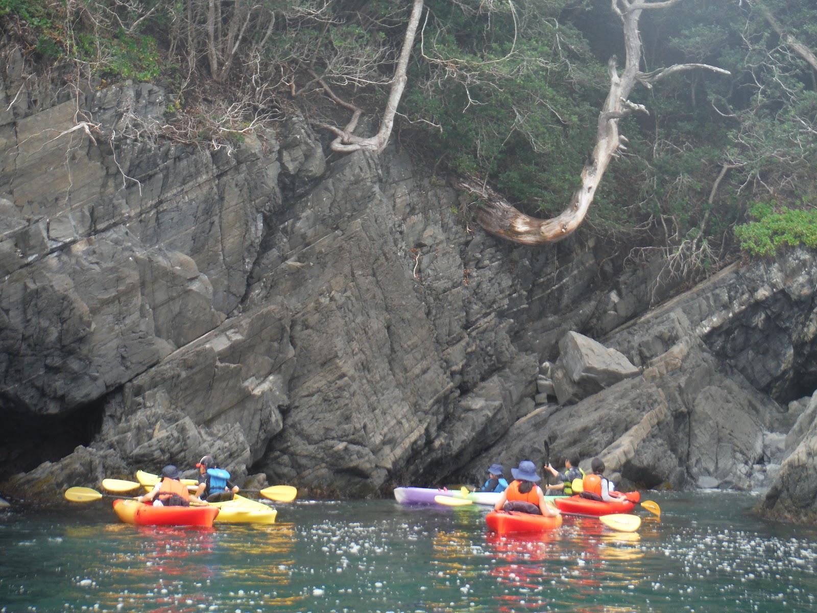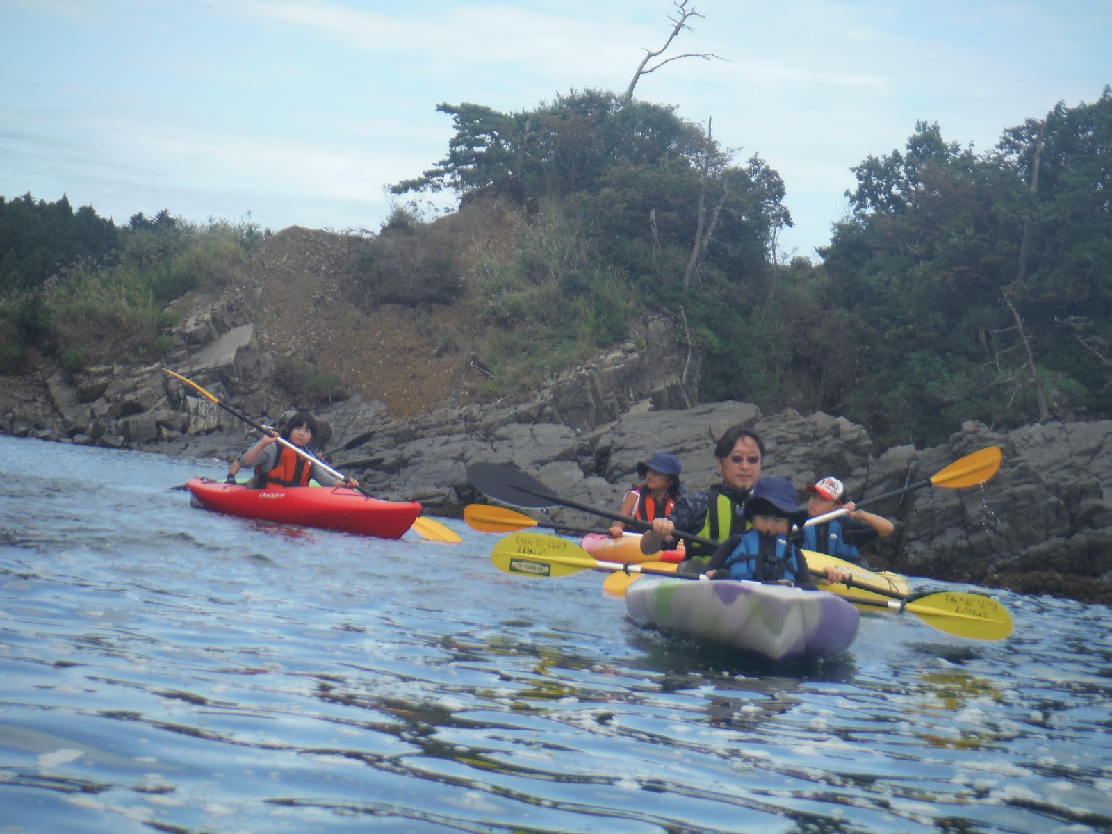 毎回参加で漕ぎ慣れたみんな。今回は右の岬を超えて岩の間を縫いながら冒険ツアー。ちょっとドキドキするね。