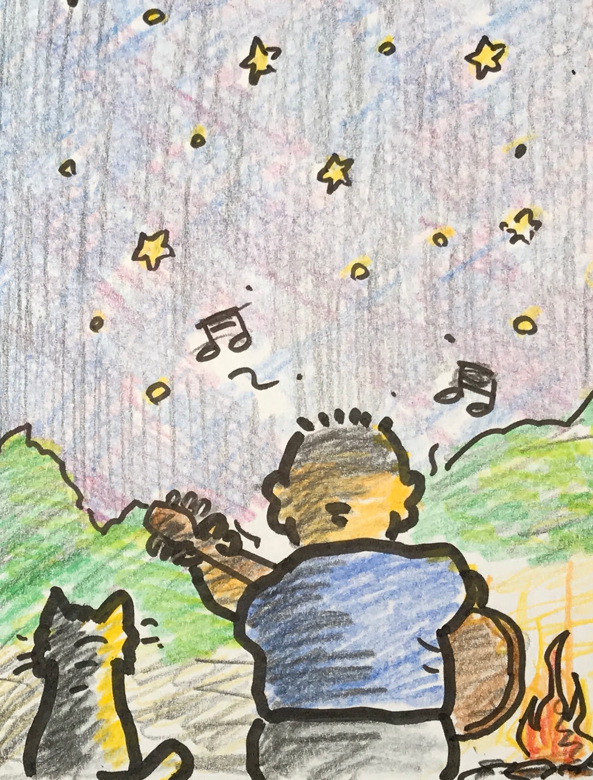 丼の後おはぎまでいただいたのでおっさん二人とも全然お腹が減りませんで、早めにおやすみしたかねちゃんを小屋に置き、あたくしは一人満天の星空に酔いつつ歌っておりました。いや~最高の気分でした!