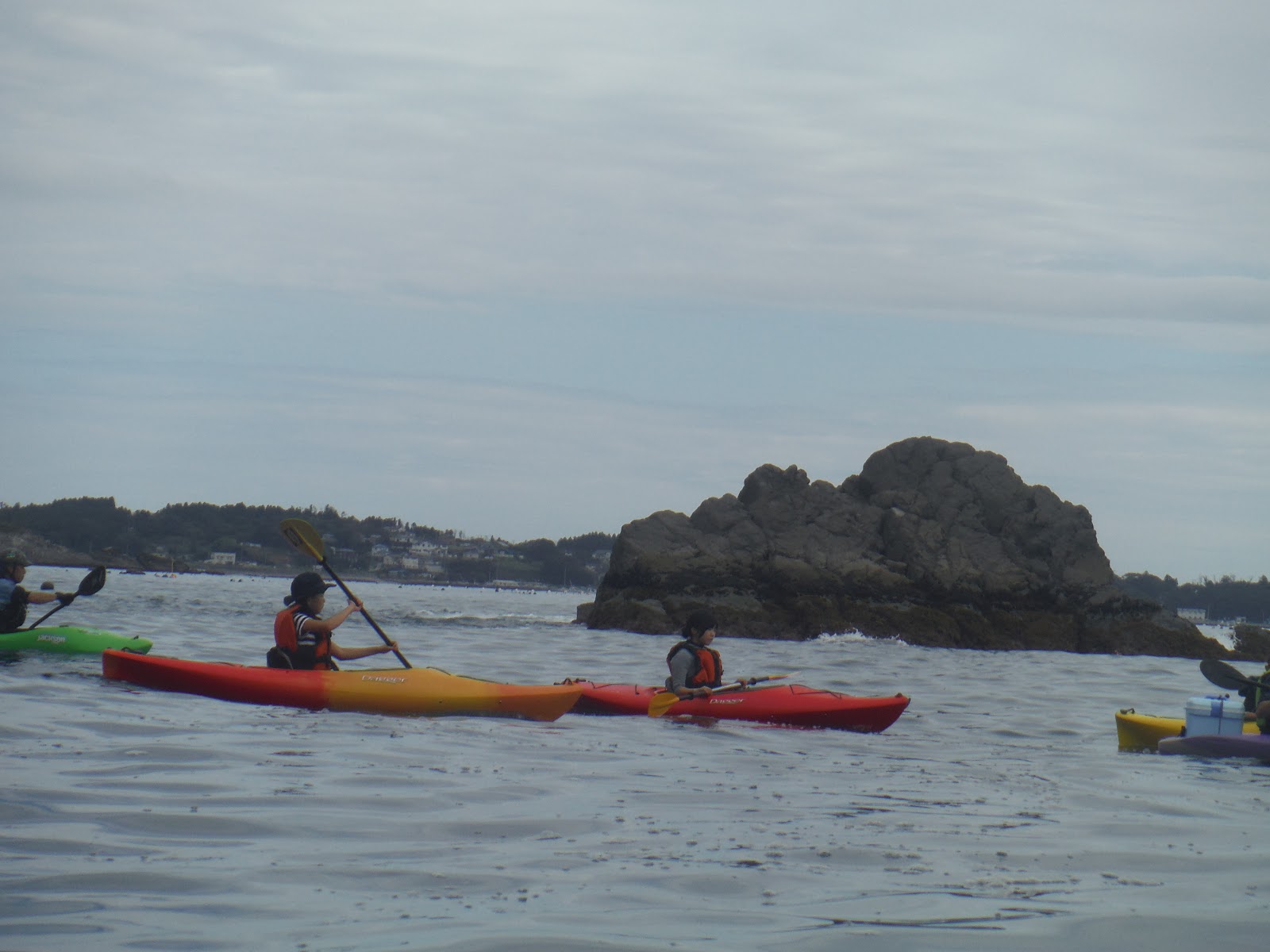 毎回参加で漕ぎ慣れたみんな。今回は右の岬を超えて岩の間を縫いながら冒険ツアー。ちょっとドキドキするね。