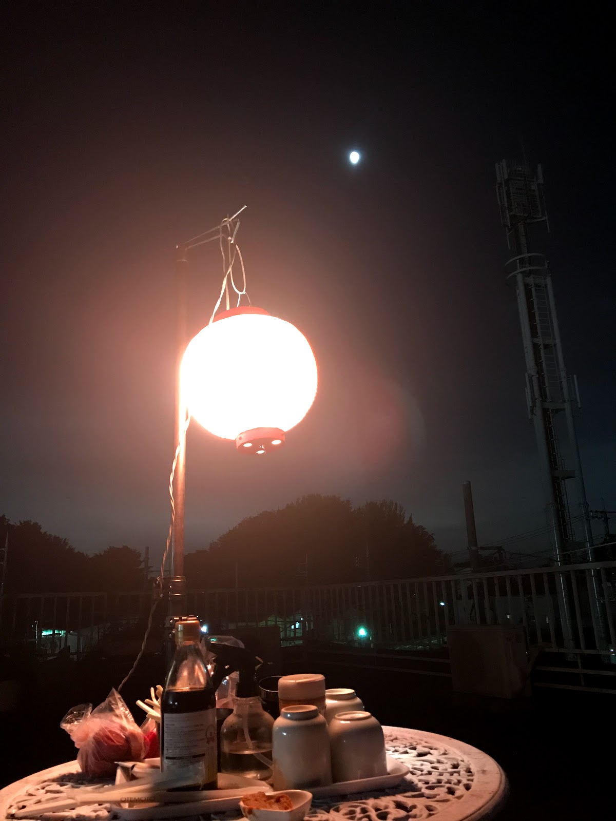 朝の雨からいつの間にか良いお天気になりました昨夜、屋上でガーデン飲み開催しました。プレ中秋の名月という訳でもありませんが、なかなか見事な月に照らされてマイコンシリエリコウ様と久々秘書の方と。