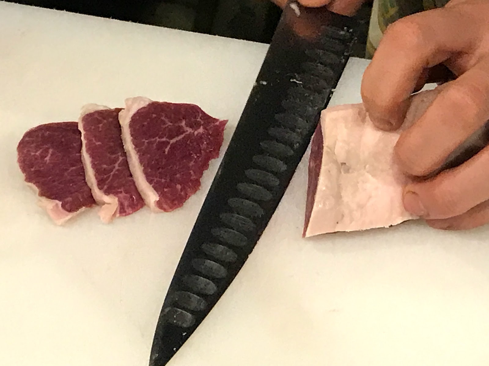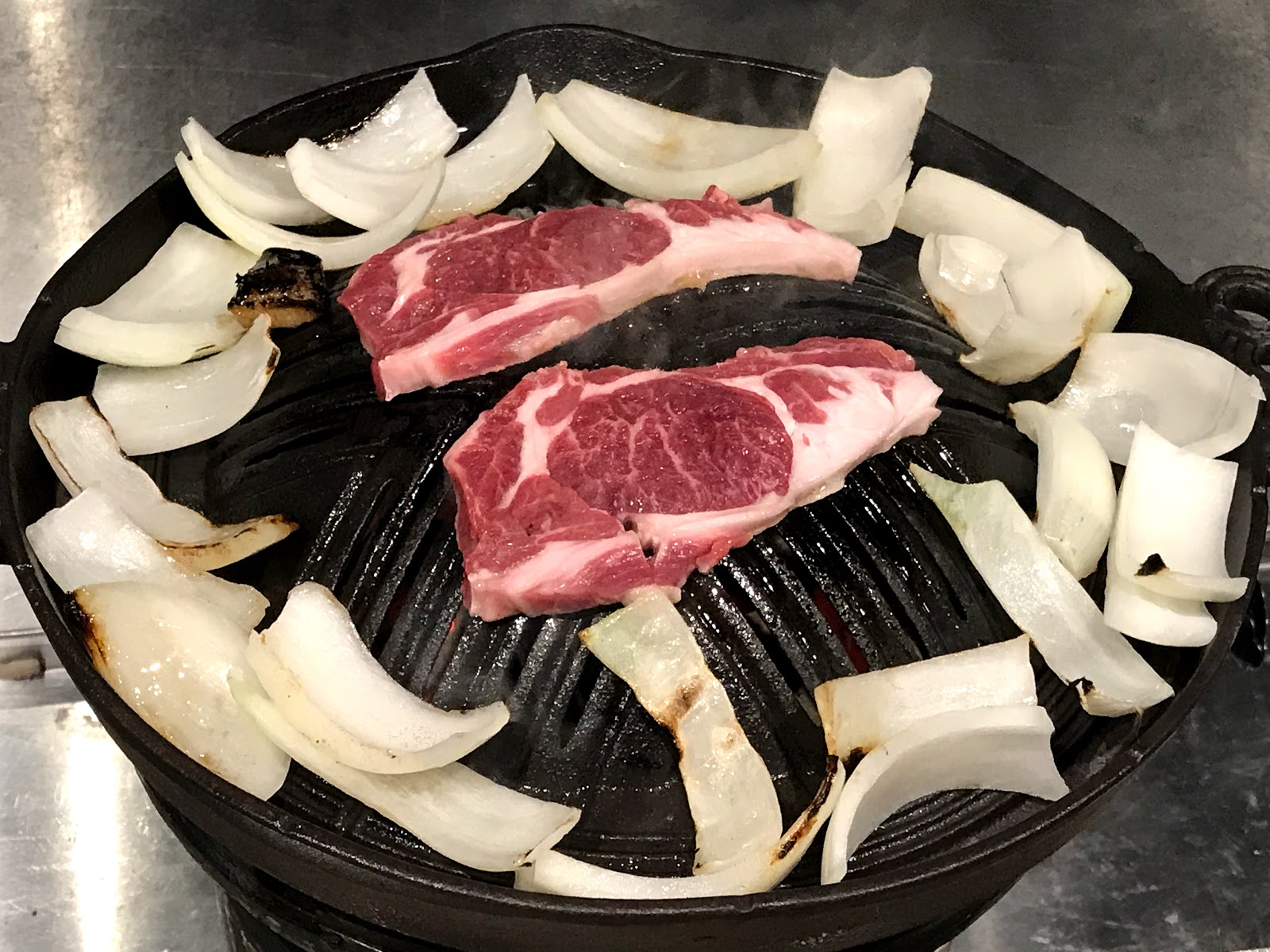 注文を受けてから目の前で切り分け、絶妙な加減に焼いてくださいます。