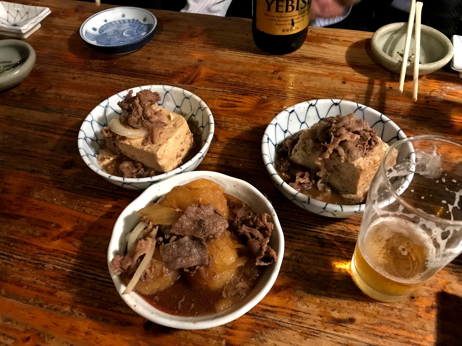 七時入店時点で奥行き深い店内はほぼ満席。あちこちのちょい狭めのお座敷で、膝を抱えた現代の町人たちが杯を傾けておりました。肉豆腐、肉じゃが、定番メニューが美味いっす。