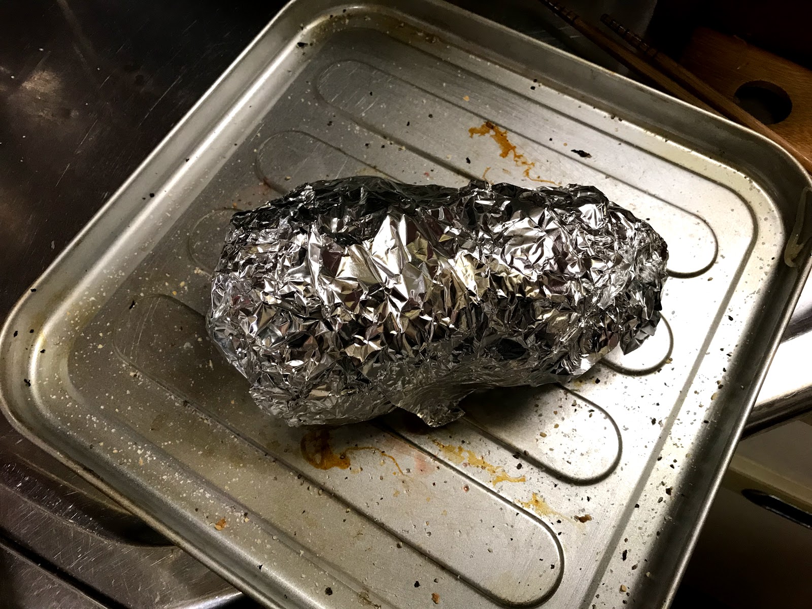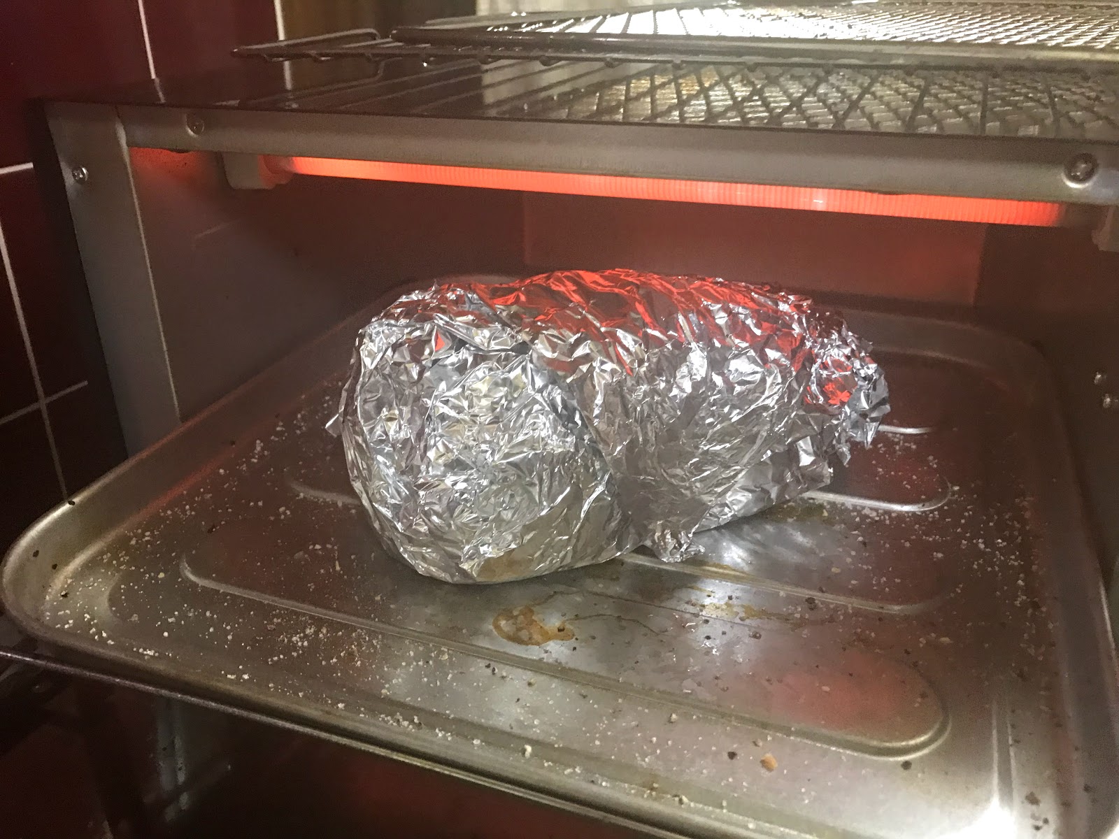 アルミホイルで全部を包みオーブントースターへ。