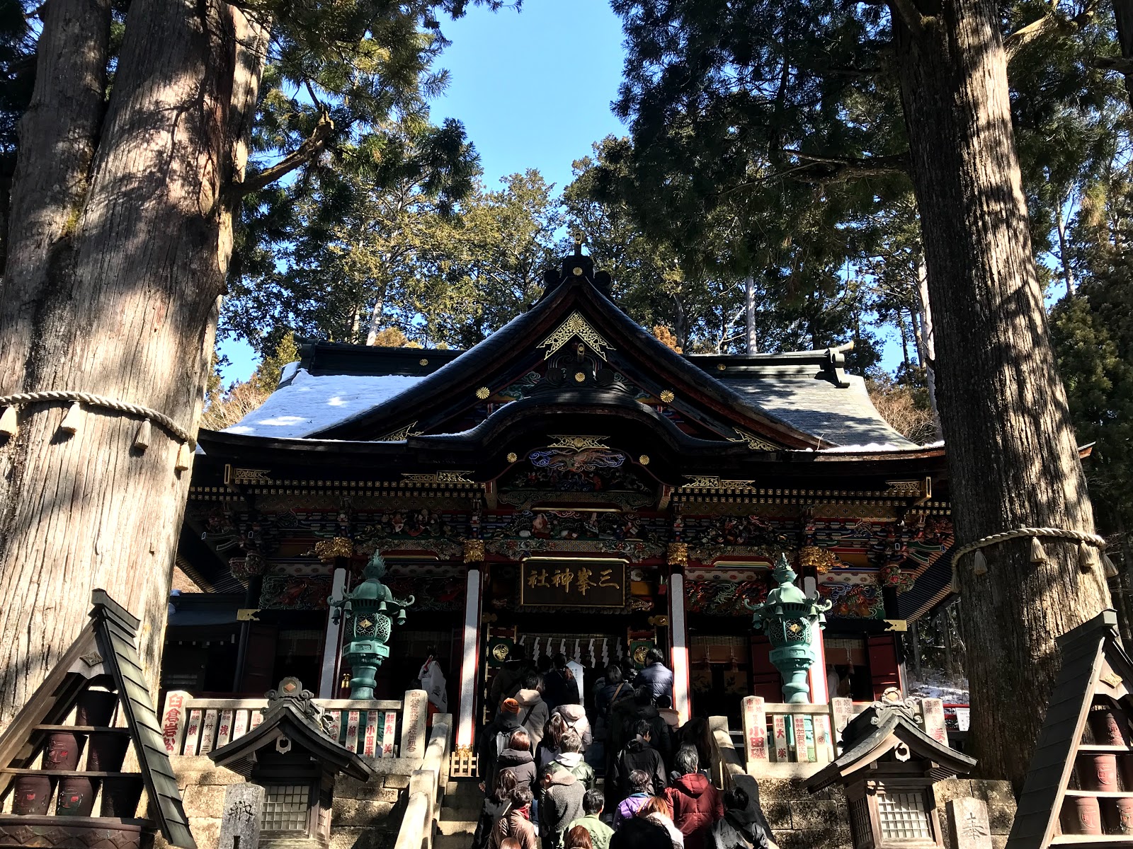 一夜明けまして三峰神社を参拝。パワースポット流行の最近にあって特に霊験あらたかと言われてるそうで、中でも毎月一日だけに配られる白いお守りを求める人の群れは早朝から大渋滞を招いており、途中の道に何か所にも作られた特設トイレがそれを物語っておりました。