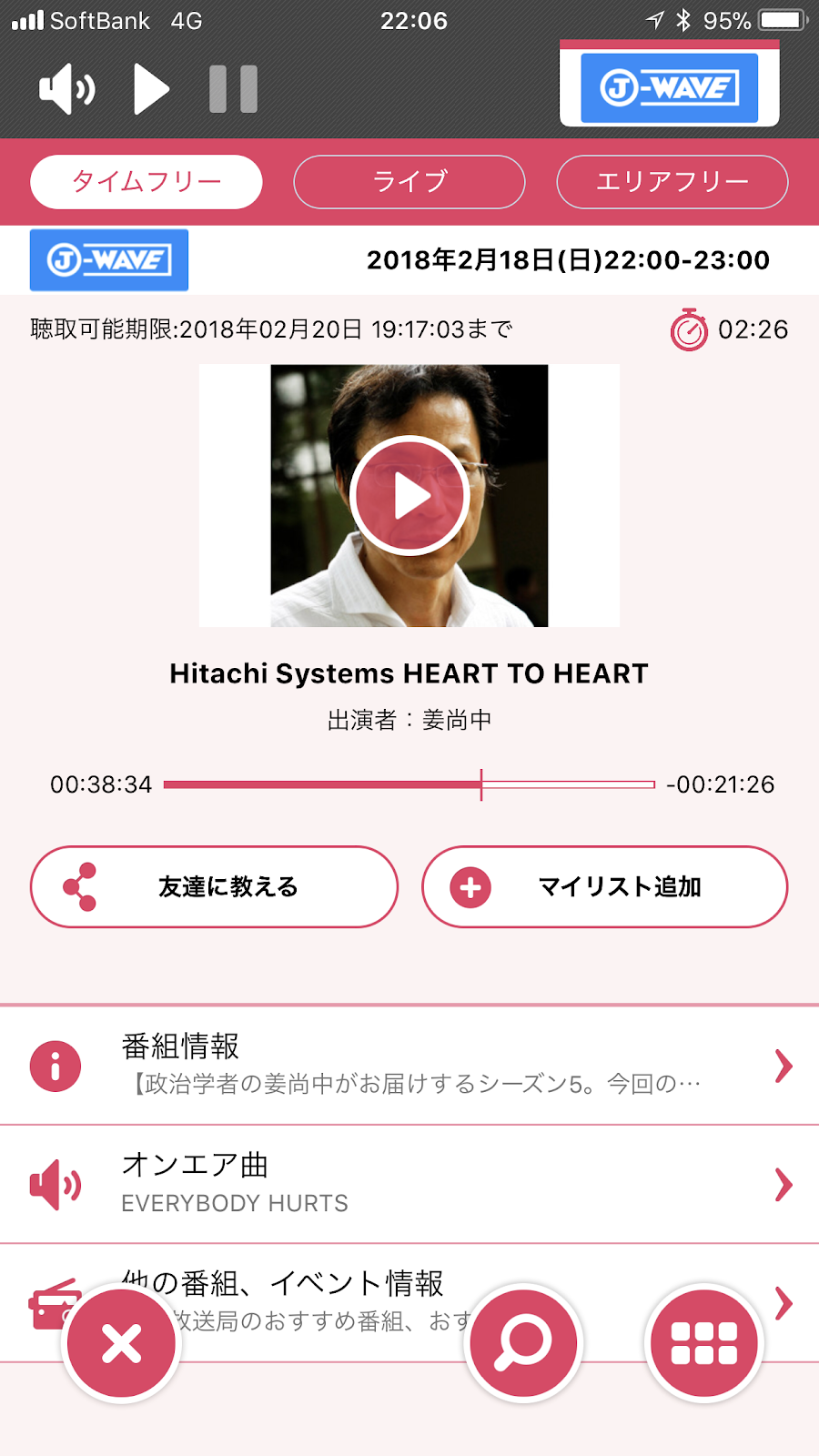 タイムフリー機能を使えば1週間前までの放送がいつでも再聴できるんですよ。ダウンロードフリーなので良かったら聞いてみてくださいね。