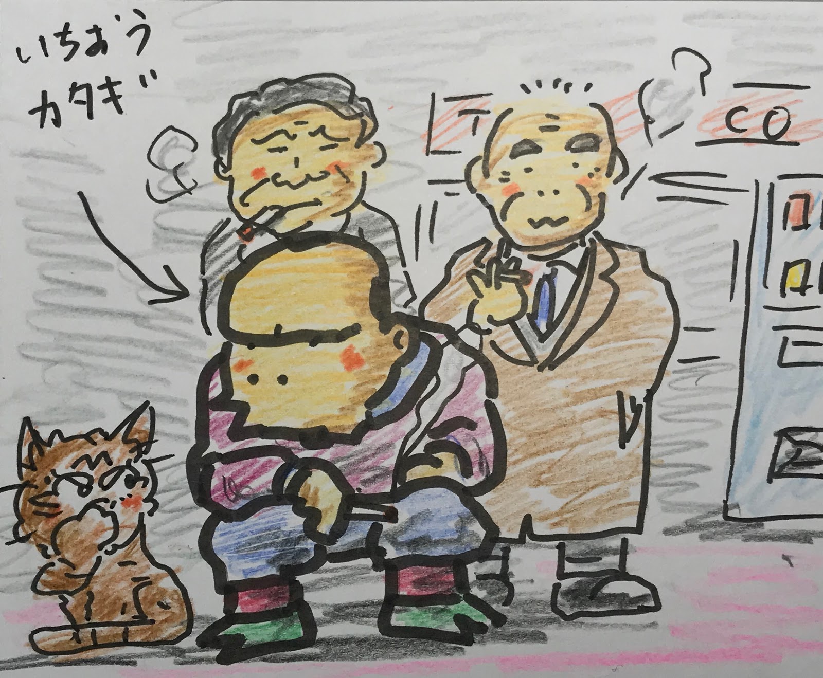 時間帯からして出勤途中のまっさら堅気のサラリーマンさん達なんでしょうが、たむろしてるとなんとなくヤサグレ感漂うといいましょうか、不穏なものを感じてしまうのは不思議です。
