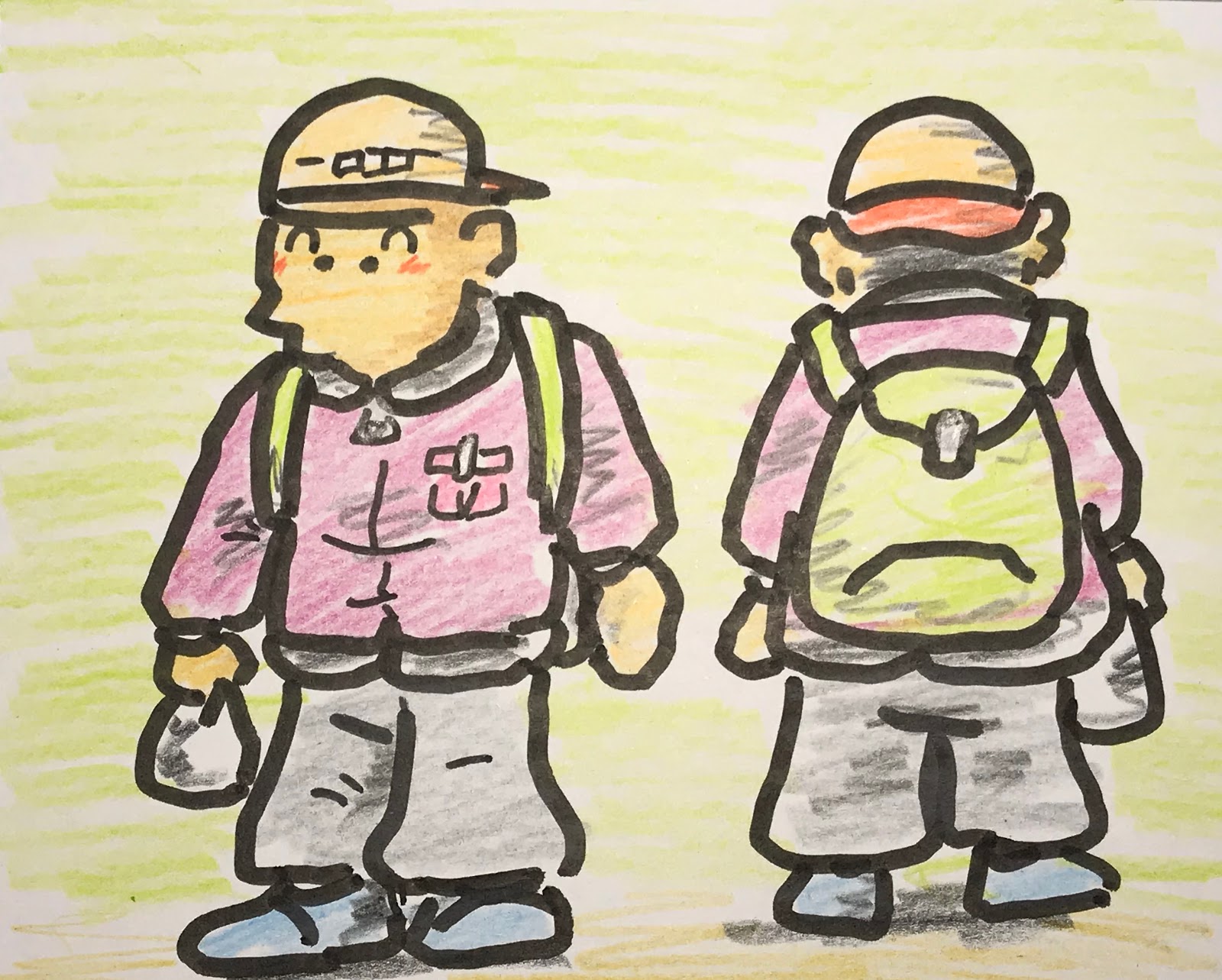 キャップを後ろにかぶって極端に下げたリュック、双子のように背格好の似た二人が全く同じかっこして歩いてたのであの業界では今これが流行りなのかなあと。似合ってるからいいけど。