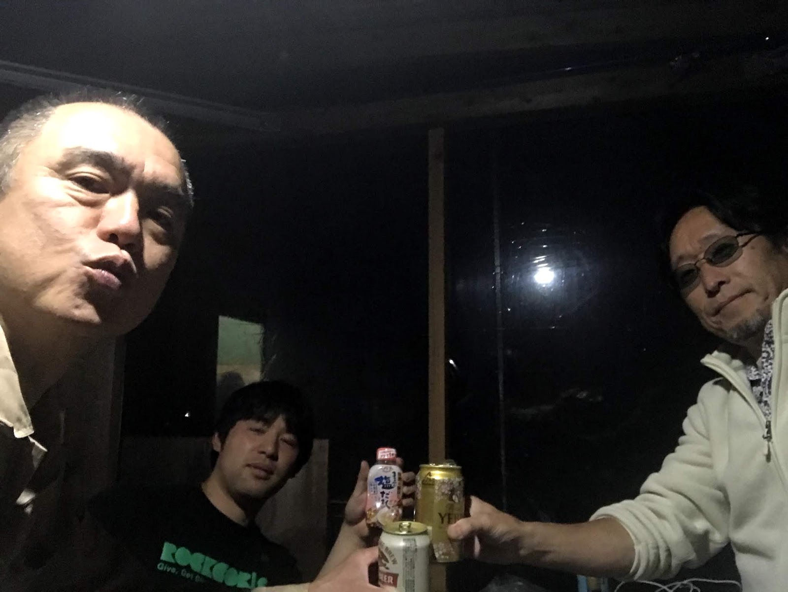 お疲れのスタッフ二人が寝た後は焚火タイム。星は見えなかったけど気持ち良く酔いました。