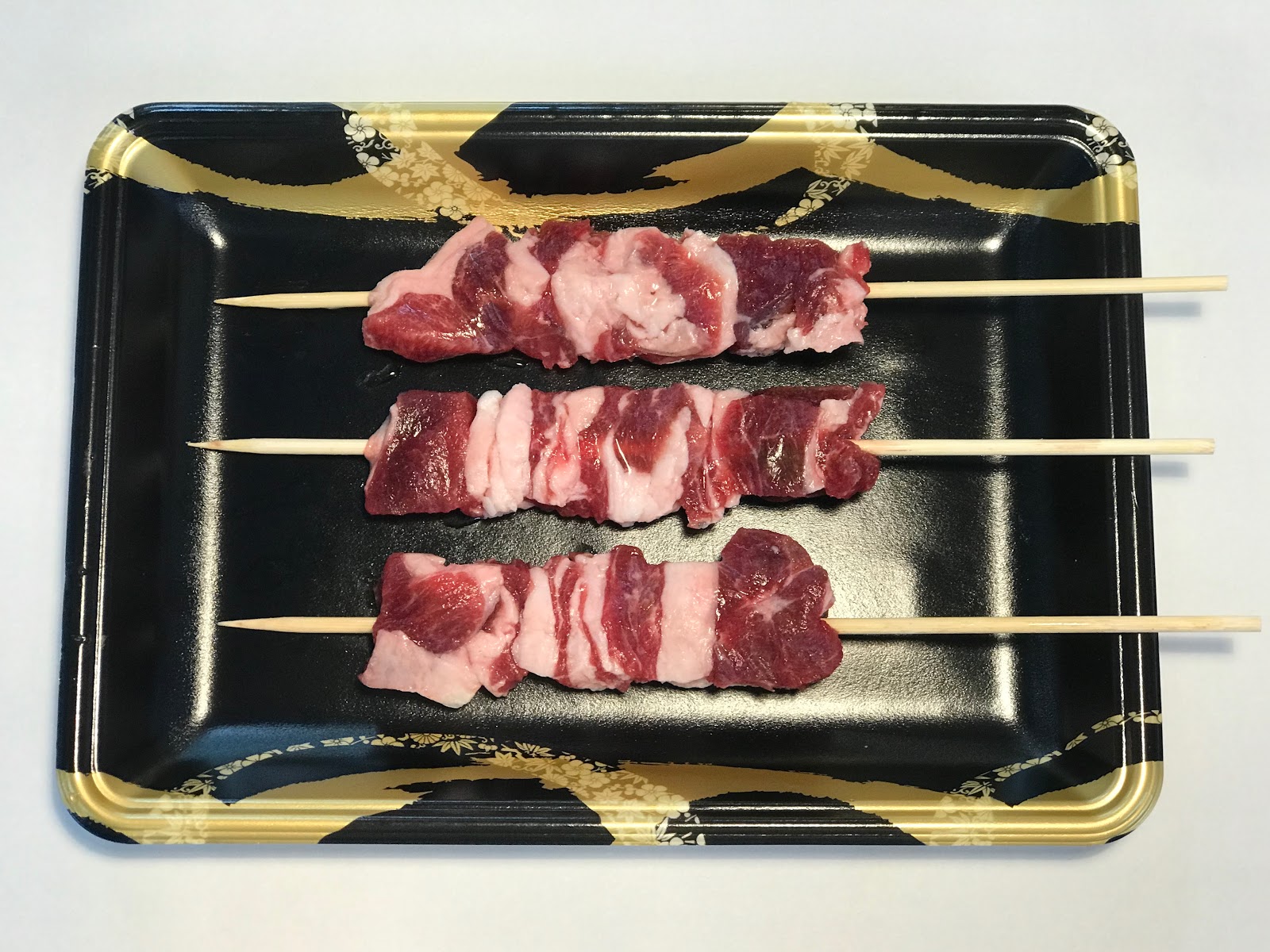 フランス産マトンのモモや肩、バラ肉を串に刺し一本約45gにしたものです。