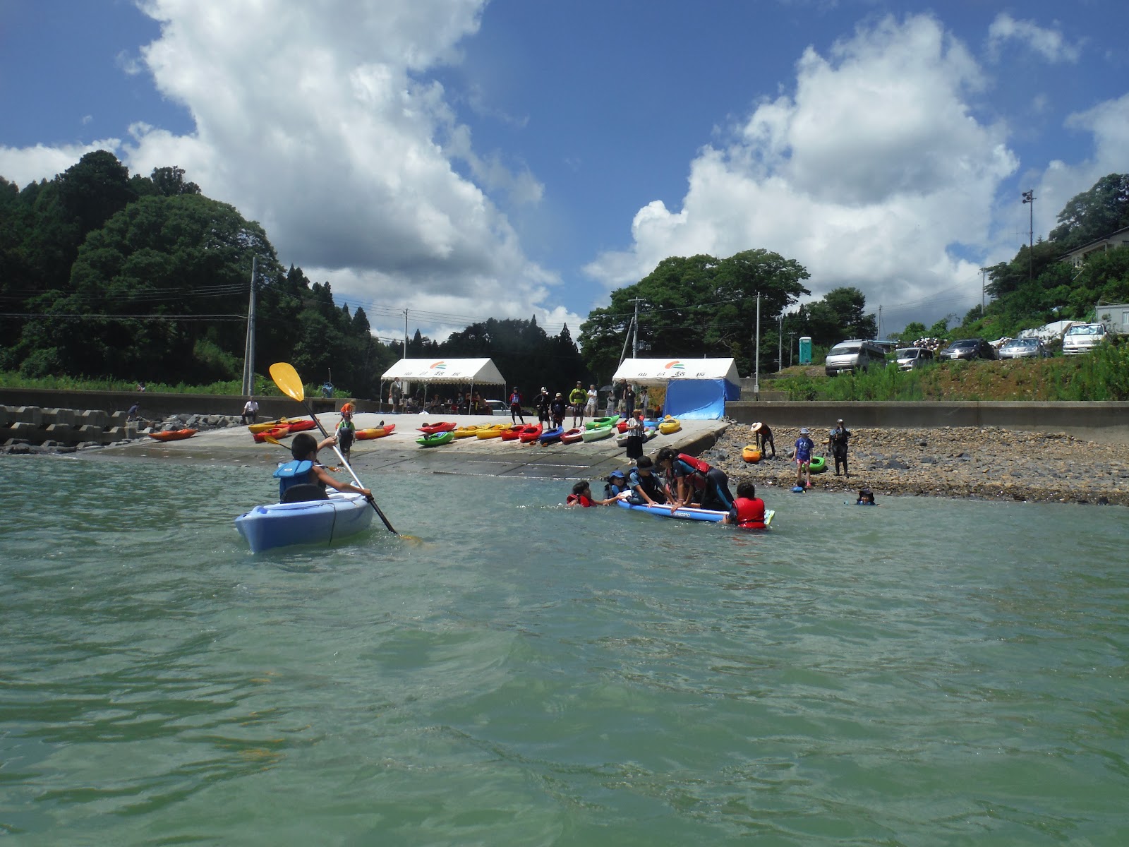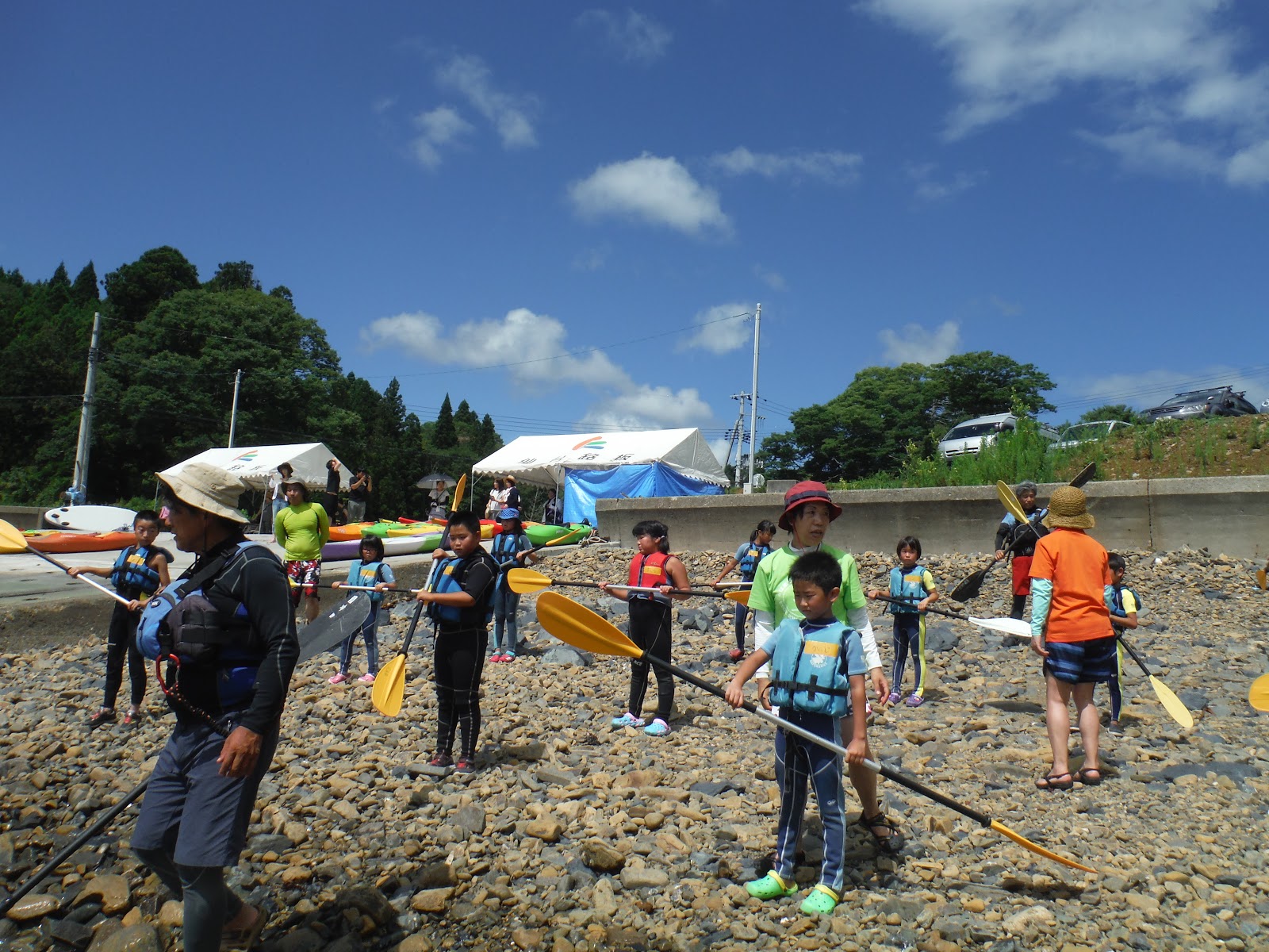 そして皆さんお待ちかね子どもカヤックイベント当日、鮮やかに晴れ上がりました~!