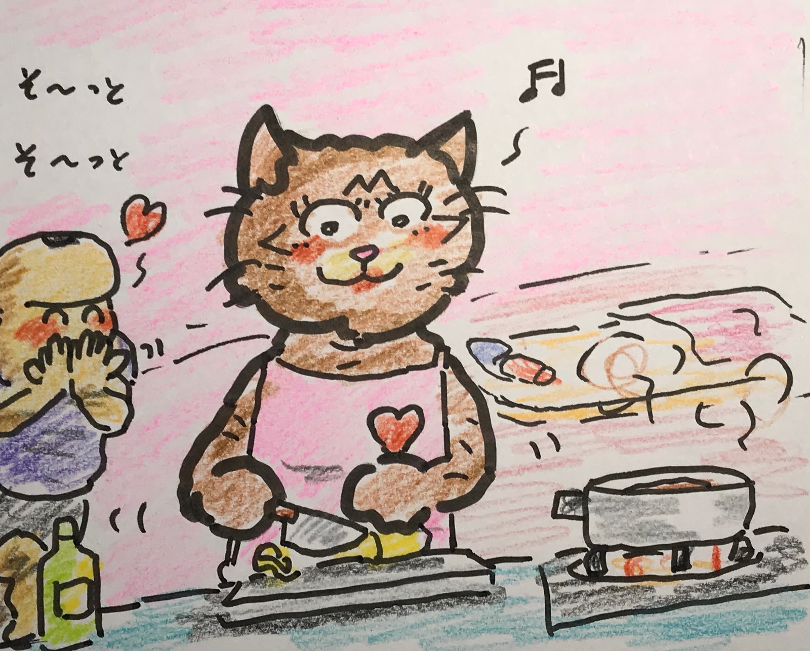 料理に慣れてないので包丁の音が不規則だってんですが、これまた面白い!