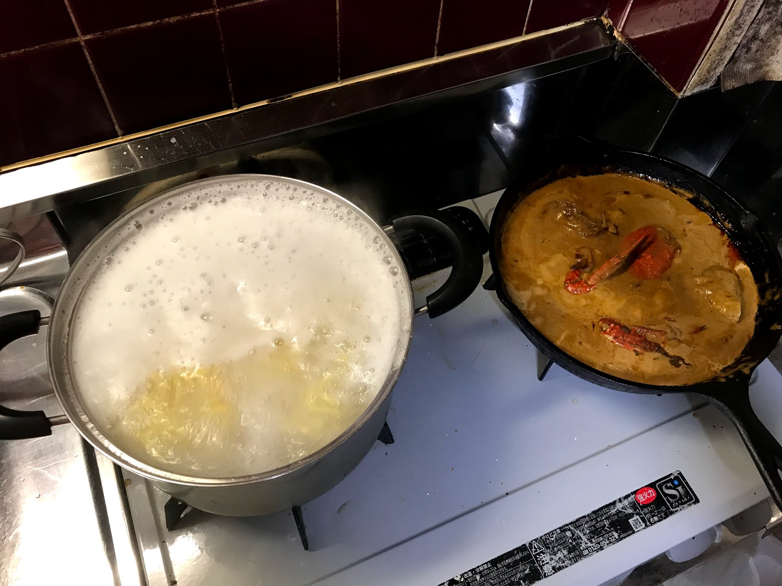 ちゃんとクリームの味もして、濃厚なエビ出汁とカニの香りが生パスタに絡んでこりゃあ美味い~!大成功でした。