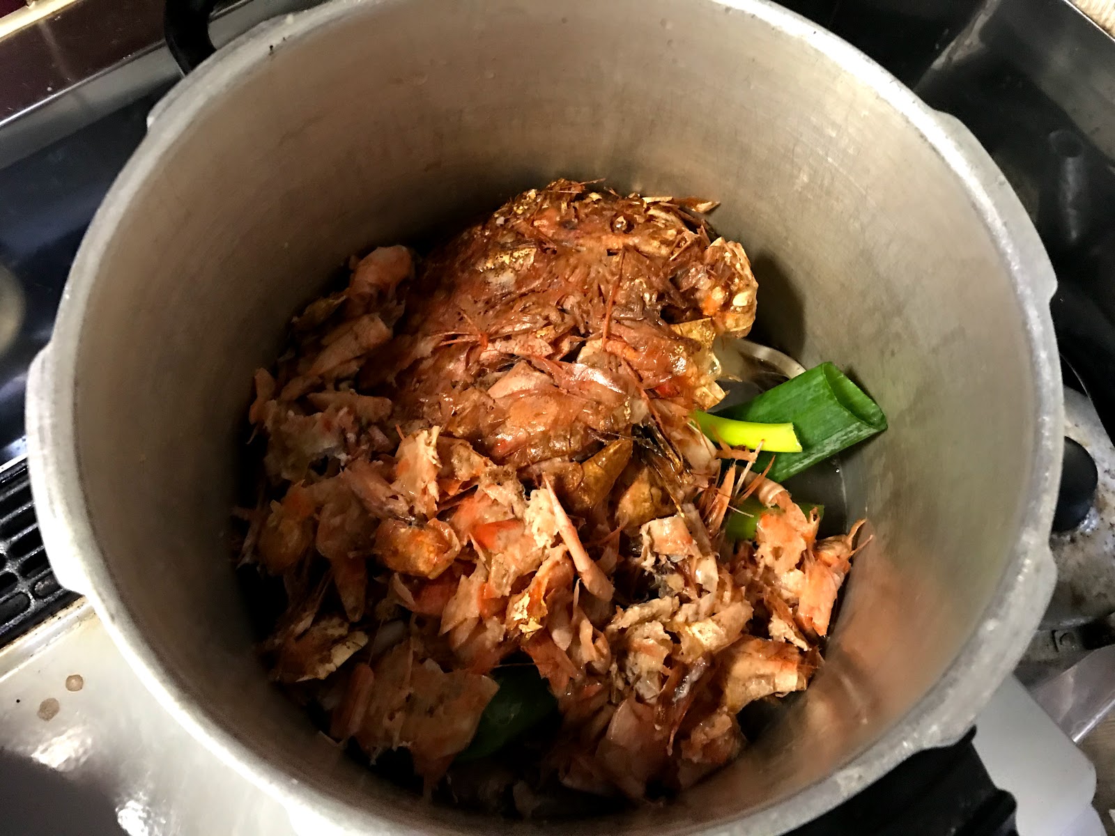 で、エビの頭の在庫でアメリカンソースっぽいのを作って足すことに。