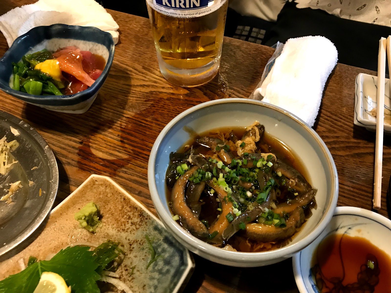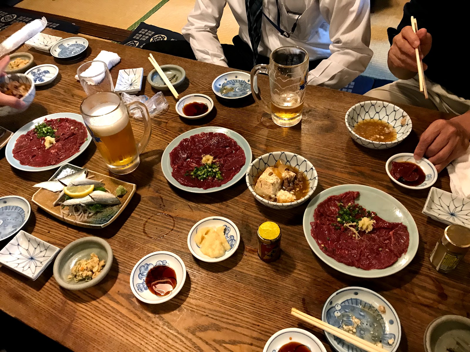 神田みますや 2018年10月19日 昨夜は久し振りの仲間と飲み会でした、神田みますやさんにて。文化文政の昔から続くという(ウソ)このお店は東京最古の居酒屋だそうで、いつでも満員の繁盛店であります。 アジフライ、赤身馬刺しなど早めに頼まないと売り切れてしまう名物メニューを先に注文しておくのがコツです。 今回のヒットはどじょうの丸煮、癖がなくて美味しかったです。 お隣のお嬢さんたちにプロカメラマンの仕事をお見せしたおーさん、さすがの腕でした。 美味しいお料理とお酒、大人の会話でおおいに盛り上がった楽しい夜でありました。 «前 次» スタッフブログ