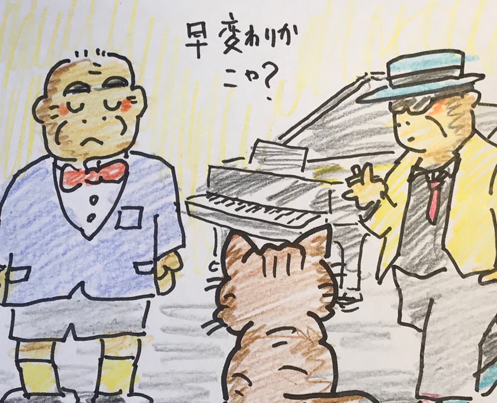 ブルグミュラーの「アラベスク」は発表会の基本蝶ネクタイ半ズボン、キャサリン・ロリン「三連符のブルース」はジャズマン風?