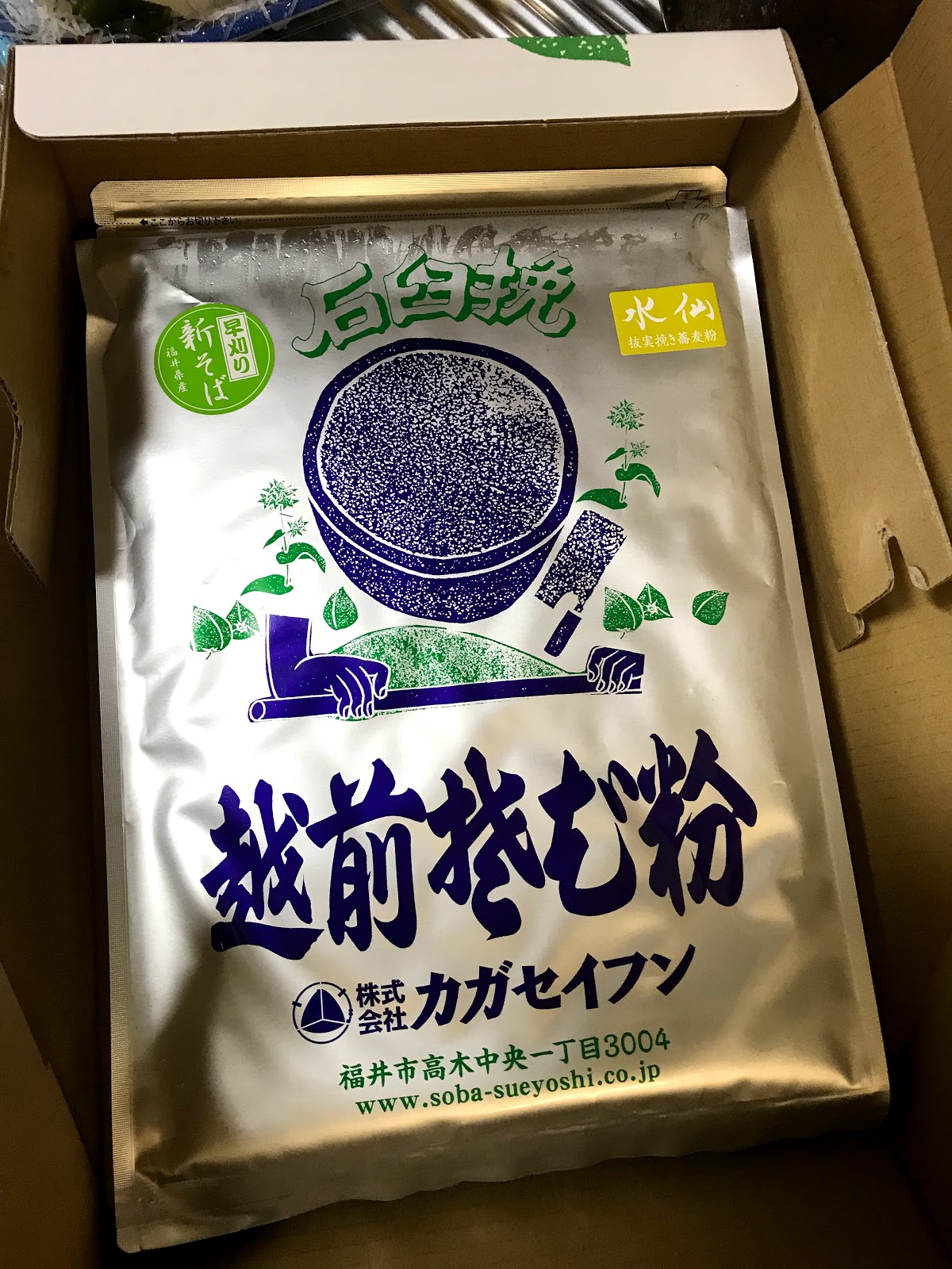 新そばの季節ですがなかなか遠出できない暮らしなので、福井のそば農家がやっている通販で採れたて挽きたてのそば粉を買いました。