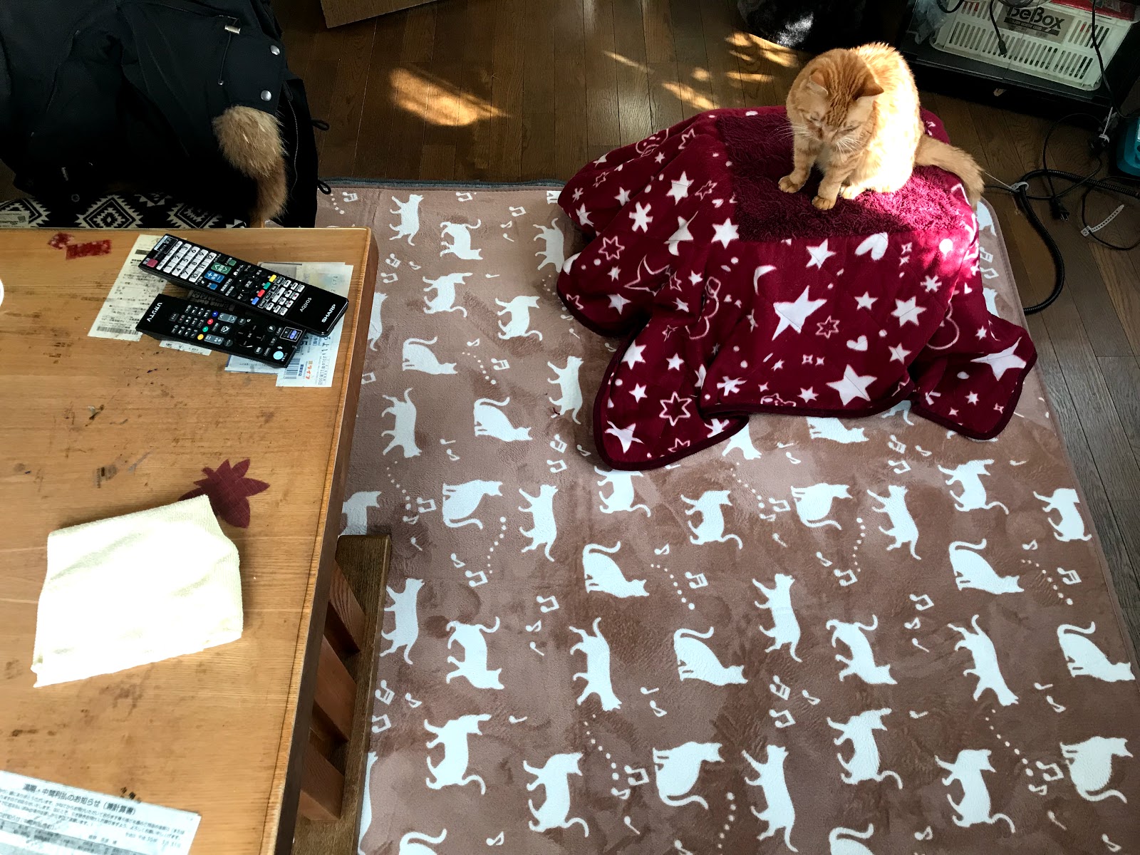 冬支度 2018年11月27日 朝晩と夜の気温差が大きくて着るものに困る今日この頃です。それでも寒さが増してまいりました。我が家もそろそろ冬支度ということで、週末には珍しく在宅し居間の掃除と床磨きしてホットカーペットを敷きました。お茶々には昨年買ってあげたにゃん専用炬燵も。 これとても喜ぶんですが入っちゃうと出て来なくなるのであたくしとしてはあまり面白くありません。とはいえこたつで丸くなるのは猫の本分?ですからいたしかたないところかと。しかしですよ 最近ようやく一緒に寝てくれるようになって喜んでたというのに、昨夜布団に抱いて行ったら脱兎の勢いで階段駆け下りてこたつの中に逃げ込んでしまいました。実にどうも現金な女であります «前 次» スタッフブログ