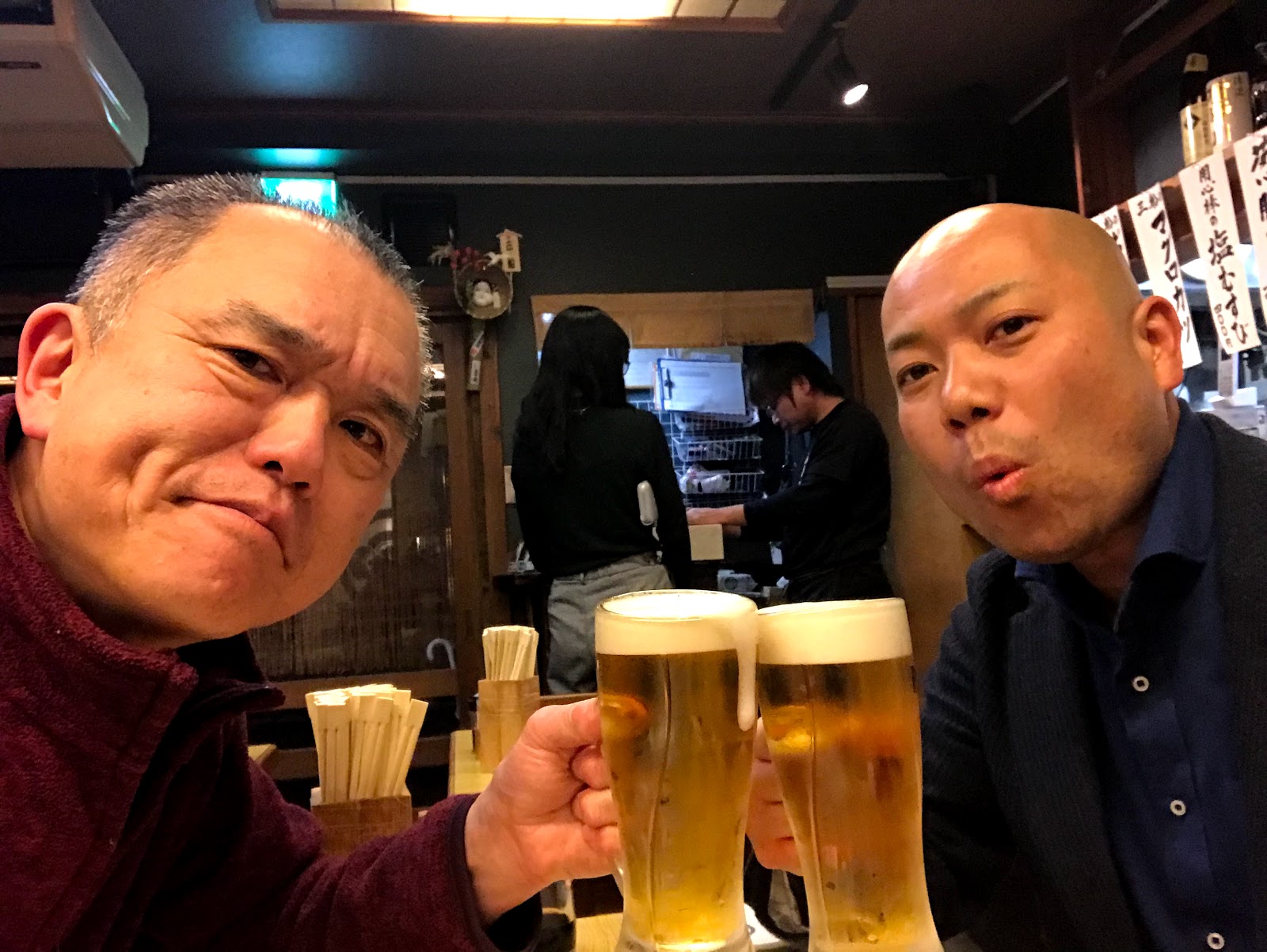 会のはねた後は恒例の打ち上げ。遠く小山まで帰るいばちゃんと人形町でちょんの間飲み。