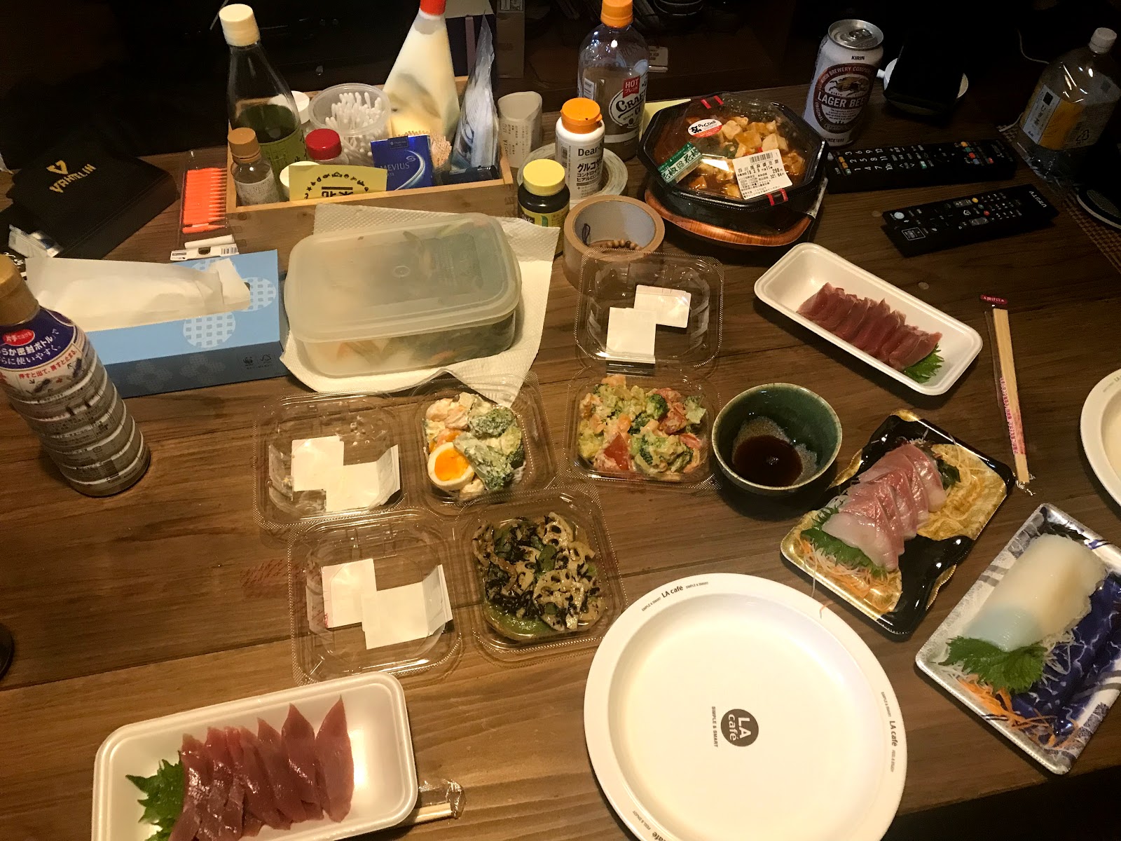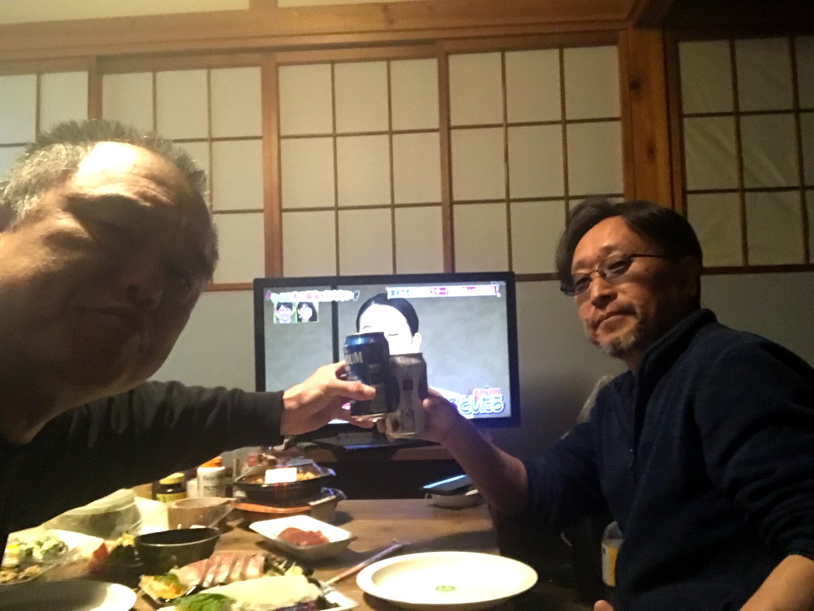 スーパーのお魚ながら生カツオなど美味しくて、ママからいただいた茎ワカメのお漬物もつまみながら飲みつつ語ったんであります。