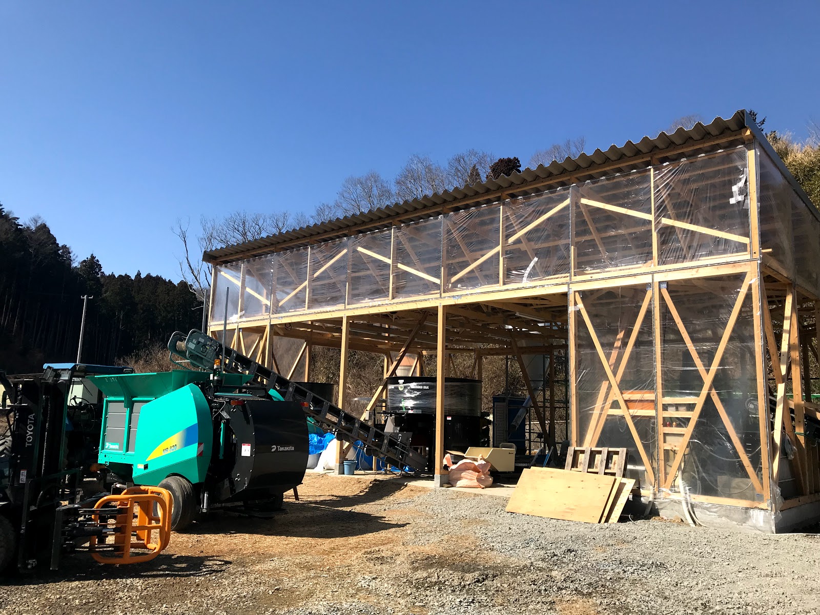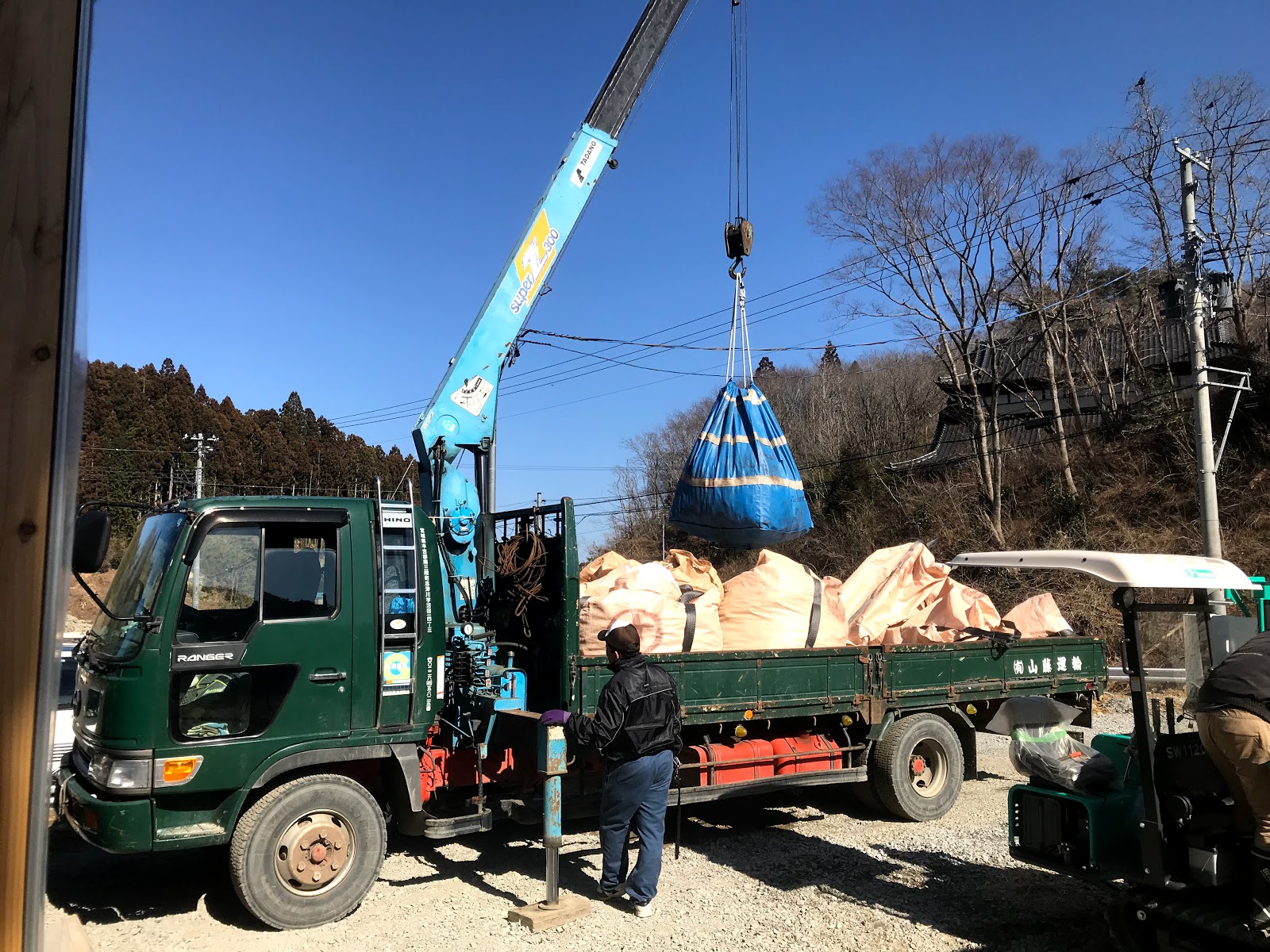 午後からの作業にはあたくしも参加。久しぶりにフォークリフトも操縦・・・というのはウソ、コスプレです ( *´艸`)