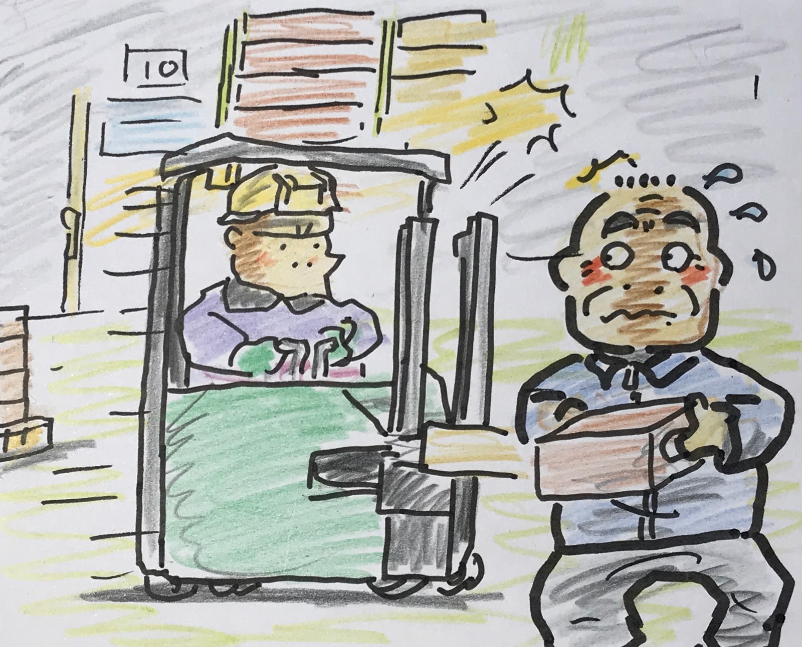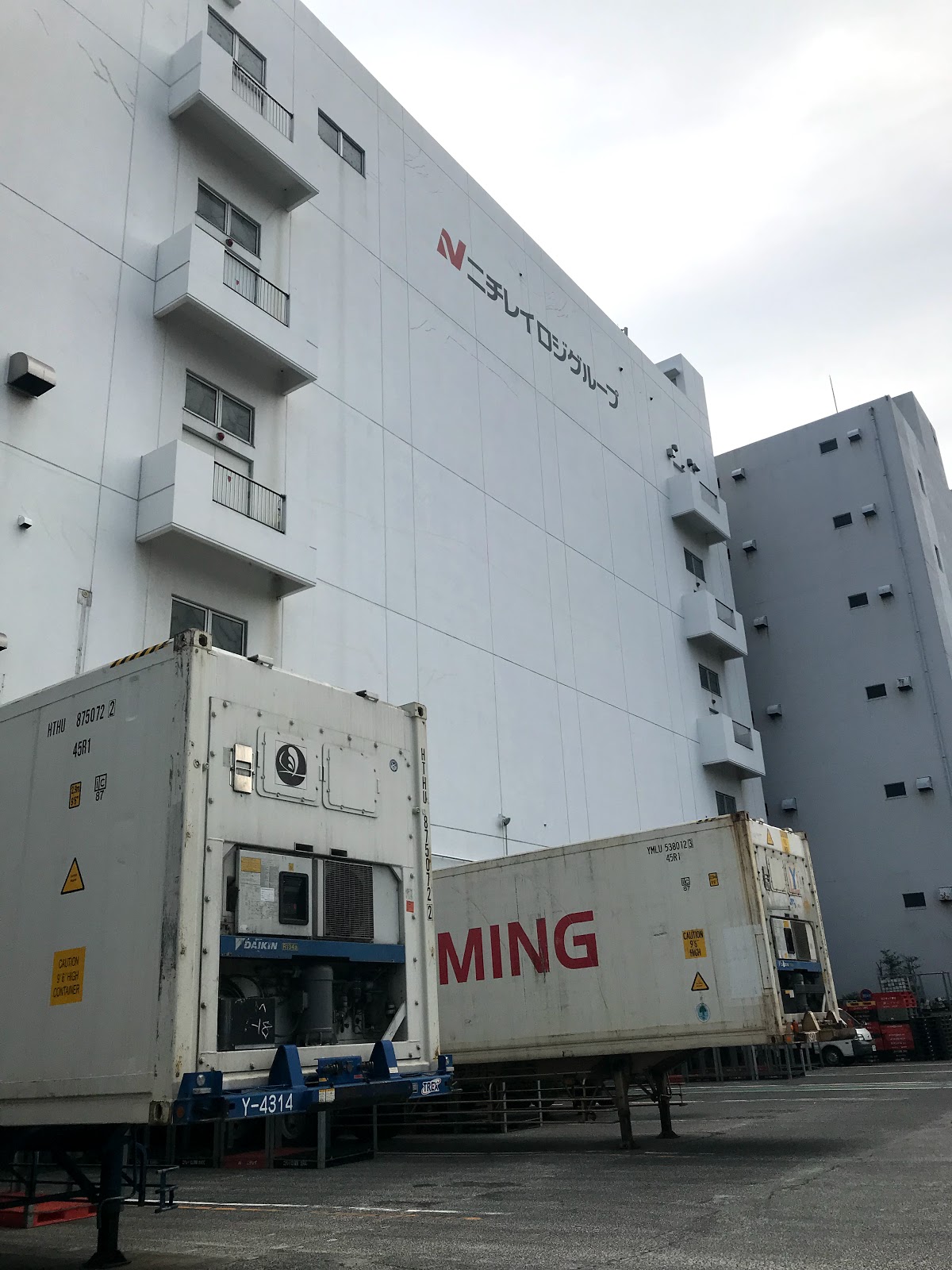 引き取りの冷蔵庫の現場はフォークリフトが職人技的正確さで交互に走り回っており、ぼさっと軌道上に入り込むとたちまち警笛の嵐。